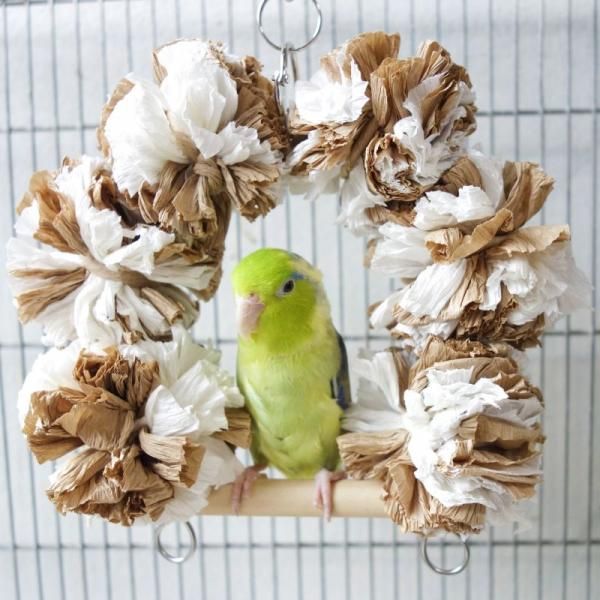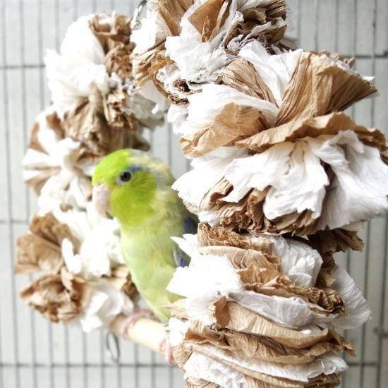 カジカジコスコスと、小鳥さんが引っ張ったり噛んだり、