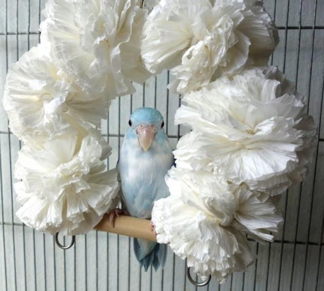 カジカジコスコスと、小鳥さんが引っ張ったり噛んだり、